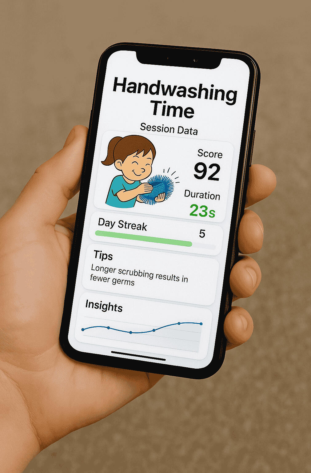Parents get at-a-glance insights into how often and how long children wash their hands—helping identify when support or reminders are needed.A connected app could deliver AI-informed feedback and personalized prompts to help establish long-term hygiene habits.